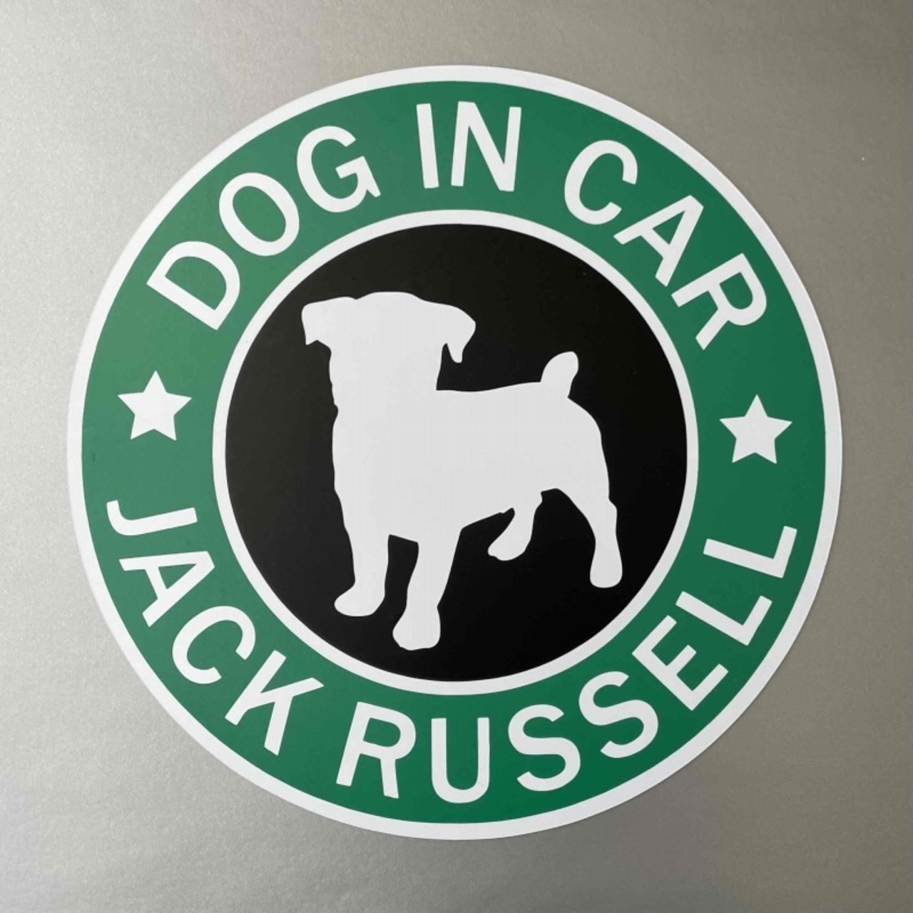 「DOG IN CAR / ジャックラッセル」のオリジナルマグネットステッカーです。カッティングステッカーをマグネット仕様に加工しているので、貼り付け時の失敗がありません。
