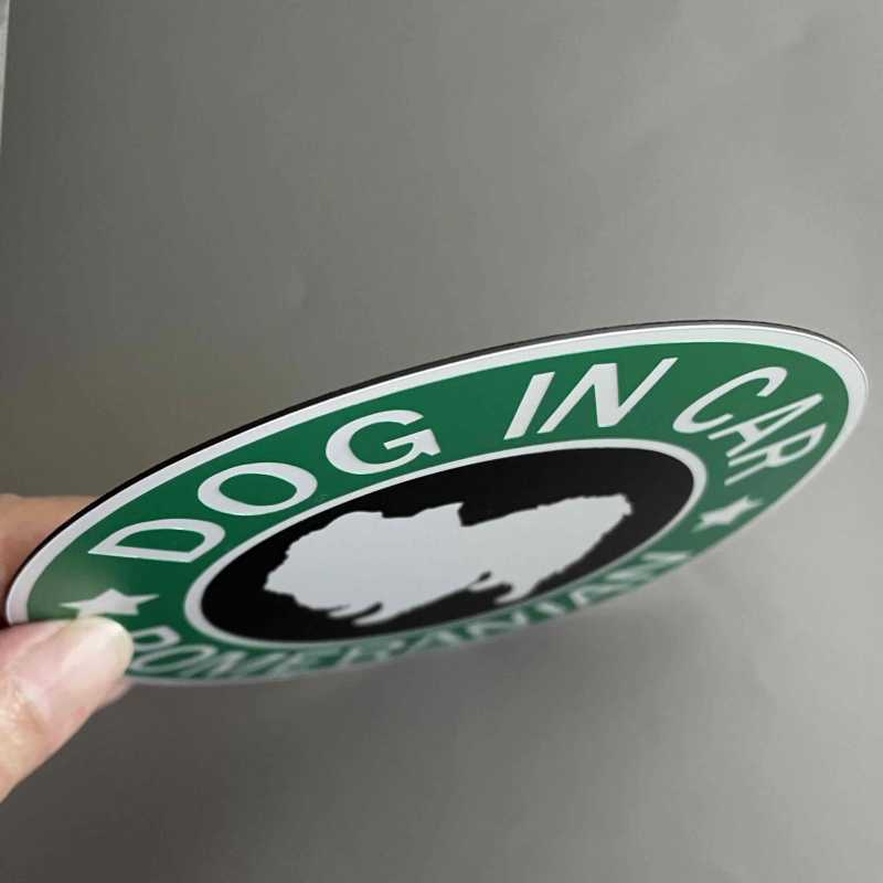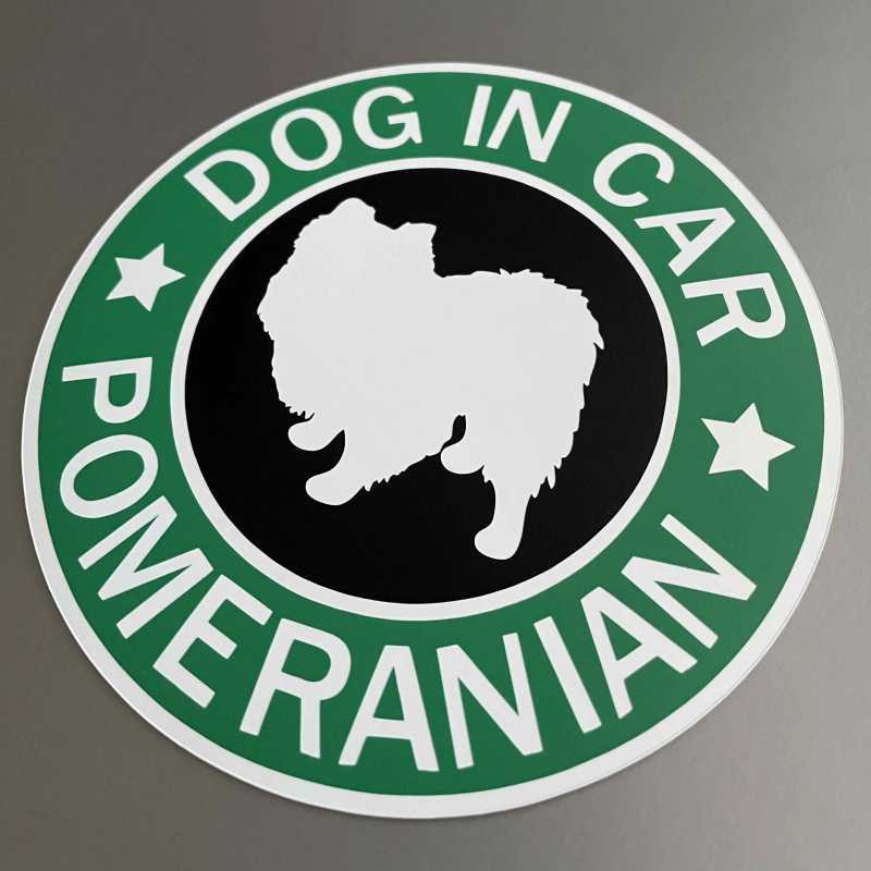 「DOG IN CAR / ポメラニアン」のオリジナルマグネットステッカーです。カッティングステッカーをマグネット仕様に加工しているので、貼り付け時の失敗がありません。