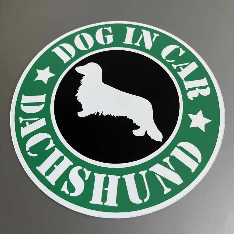 「DOG IN CAR / ダックスフンド」のオリジナルマグネットステッカーです。カッティングステッカーをマグネット仕様に加工しているので、貼り付け時の失敗がありません。