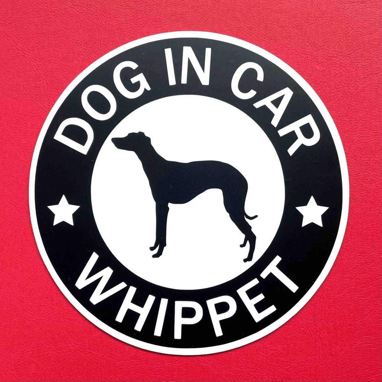 「DOG IN CAR / ウィペット」のオリジナルマグネットステッカーです。カッティングステッカーをマグネット仕様に加工しているので、貼り付け時の失敗がありません。