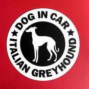 「DOG IN CAR / イタリアングレーハウンド」のオリジナルマグネットステッカーです。カッティングステッカーをマグネット仕様に加工しているので、貼り付け時の失敗がありません。