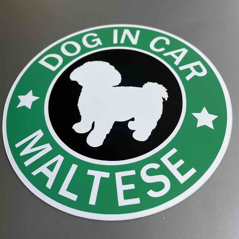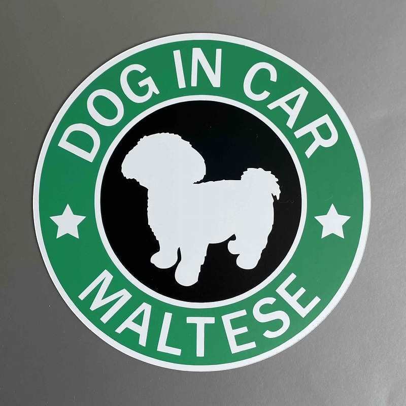 「DOG IN CAR / マルチーズ」のオリジナルマグネットステッカーです。カッティングステッカーをマグネット仕様に加工しているので、貼り付け時の失敗がありません。