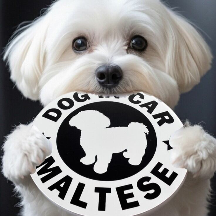 「DOG IN CAR / マルチーズ」のオリジナルマグネットステッカーです。カッティングステッカーをマグネット仕様に加工しているので、貼り付け時の失敗がありません。