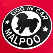 「DOG ON BOARD / マルプー」のオリジナルマグネットステッカーです。(「DOG IN CAR / マルプー」もございますので、そちらをご希望でしたらその旨ご連絡ください。末尾に画像あり)カッティングステッカーをマグネット仕様に加工しているので、貼り付け時の失敗がありません。