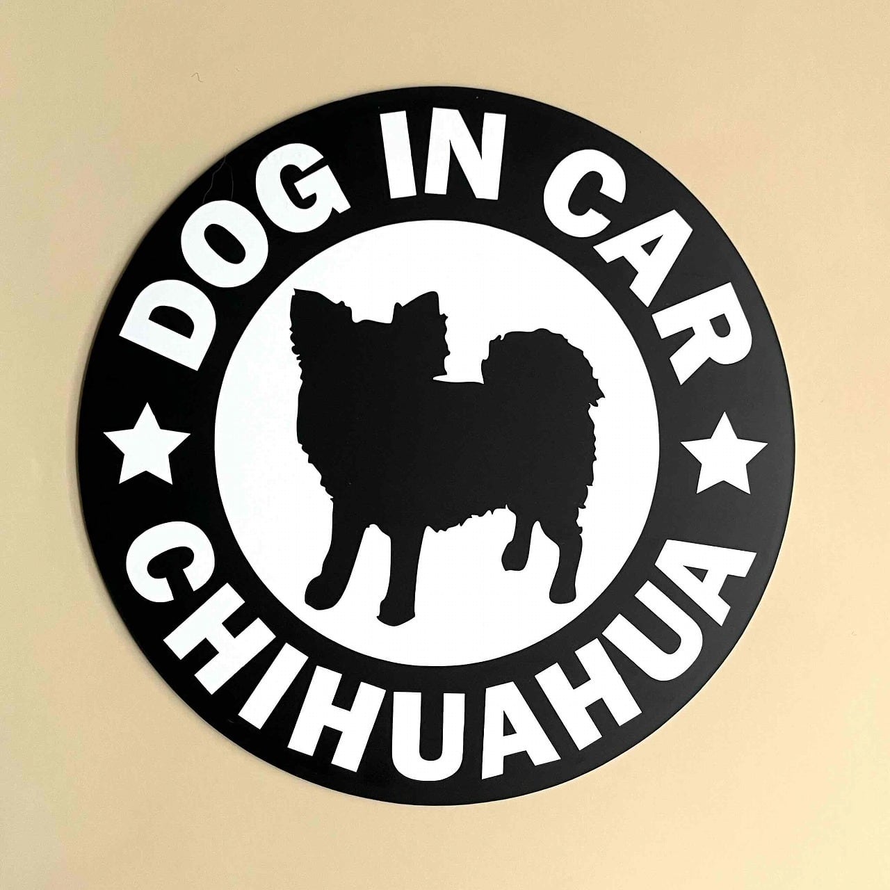 「DOG IN CAR /チワワ」のオリジナルマグネットステッカーです。カッティングステッカーをマグネット仕様に加工しているので、貼り付け時の失敗がありません。