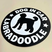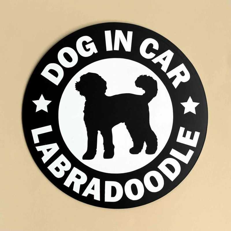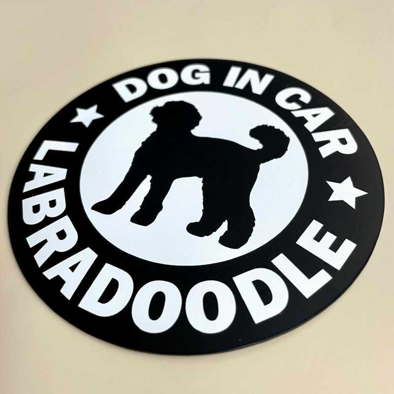 「DOG IN CAR /ラブラドゥードル」のオリジナルマグネットステッカーです。カッティングステッカーをマグネット仕様に加工しているので、貼り付け時の失敗がありません。